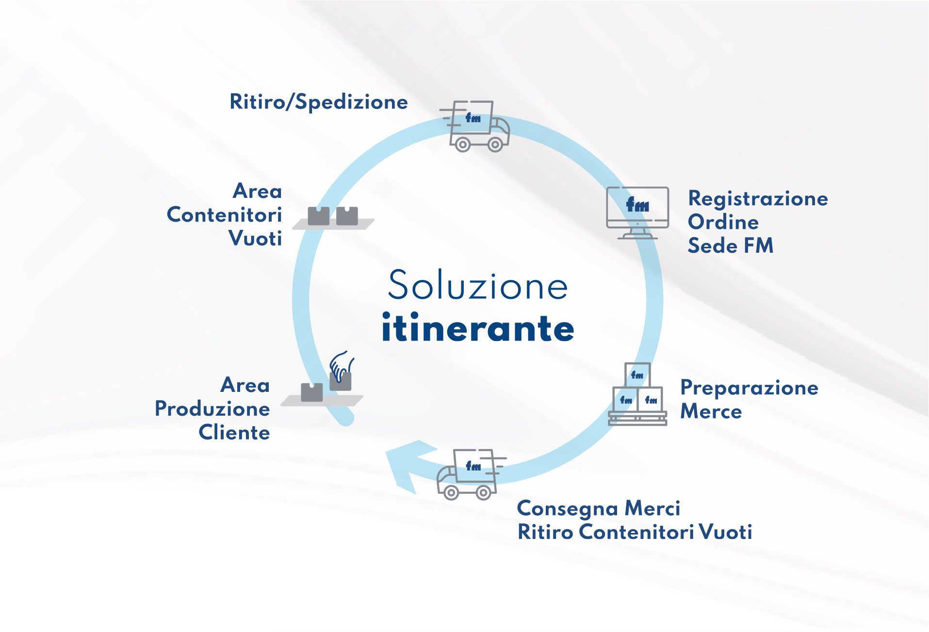Questa è la “classica” soluzione KANBAN che prevede la gestione di contenitori di plastica presso la sede operativa del cliente.